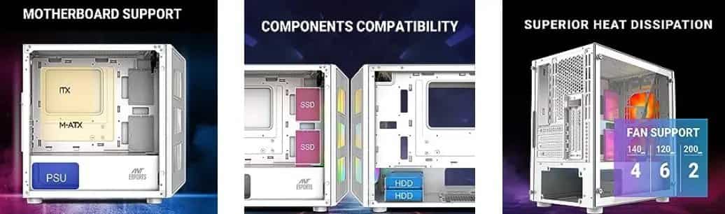 - Compatibility and Versatility – The Ant Esports 200 Air Mini supports up to mATX form factor motherboards, providing compatibility with a wide range of motherboard options. Furthermore, it can accommodate CPU air coolers measuring up to 190mm in height, ensuring compatibility with various cooling solutions. This versatility allows you to build a powerful gaming system that meets your specific requirements and preferences.