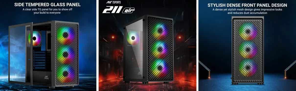 - Distinctive Design: Stand out from the crowd with the Ant Esports 211 Air’s unique front mesh panel. Not only does it provide efficient airflow, but it also gives your gaming cabinet a distinctive and eye-catching look that complements your gaming setup.