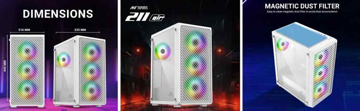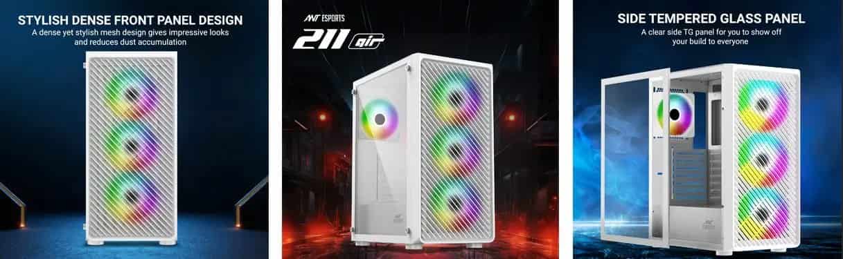 - Distinctive Design: Stand out from the crowd with the Ant Esports 211 Air White’s unique front mesh panel. Not only does it provide efficient airflow, but it also gives your gaming cabinet a distinctive and eye-catching look that complements your gaming setup.