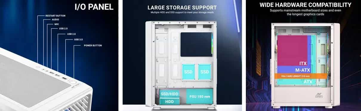 - Motherboard Compatibility: The Ant Esports 211 Air White is ready for a variety of gaming setups, supporting up to ATX motherboards. Whether you’re building a powerful gaming rig or a versatile workstation, this case has the space and compatibility you need.
