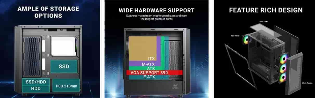 - Broad Motherboard Compatibility: The Ant Esports 411 Air doesn’t limit your choice of components, supporting even EATX motherboards. This means you have the space and compatibility to build a powerful gaming rig or workstation with ease.