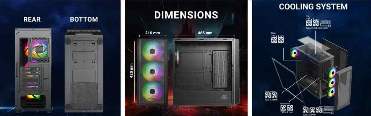 For enthusiasts of liquid cooling, this cabinet supports a 360mm radiator on the top, ensuring efficient heat dissipation. If air cooling is more your style, you can install CPU coolers up to 165mm in height. But that’s not all – two additional 120mm fans can be mounted on the side panel, drawing in fresh, cold air from outside to further enhance cooling efficiency.Incorporating innovative design and superior functionality, the Ant Esports 411 Air is the ultimate choice for gamers seeking exceptional cooling performance, storage options, and motherboard compatibility. Elevate your gaming experience and create a visually stunning rig with this remarkable gaming cabinet.