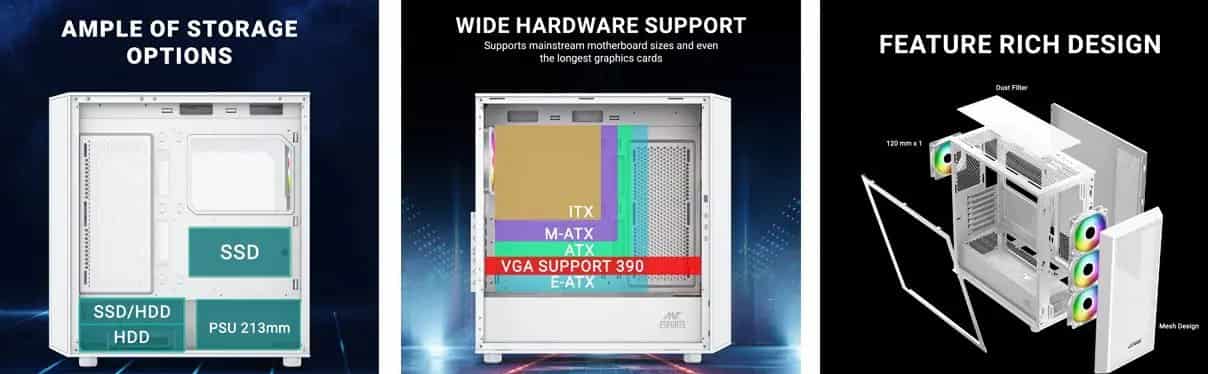 - Broad Motherboard Compatibility: The Ant Esports 411 Air White doesn’t limit your choice of components, supporting even EATX motherboards. This means you have the space and compatibility to build a powerful gaming rig or workstation with ease.