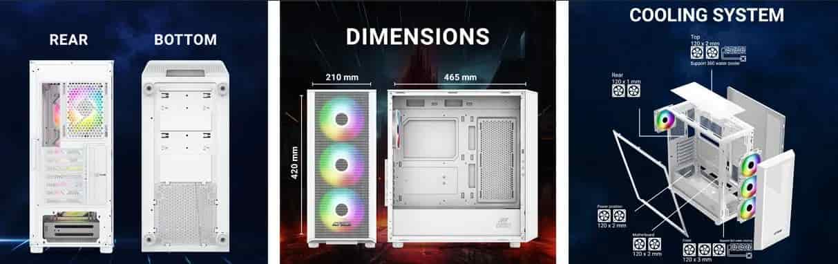 For enthusiasts of liquid cooling, this cabinet supports a 360mm radiator on the top, ensuring efficient heat dissipation. If air cooling is more your style, you can install CPU coolers up to 165mm in height. But that’s not all – two additional 120mm fans can be mounted on the side panel, drawing in fresh, cold air from outside to further enhance cooling efficiency.Incorporating innovative design and superior functionality, the Ant Esports 411 Air White is the ultimate choice for gamers seeking exceptional cooling performance, storage options, and motherboard compatibility. Elevate your gaming experience and create a visually stunning rig with this remarkable gaming cabinet.