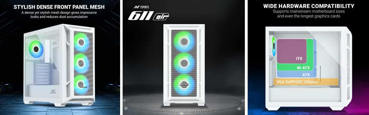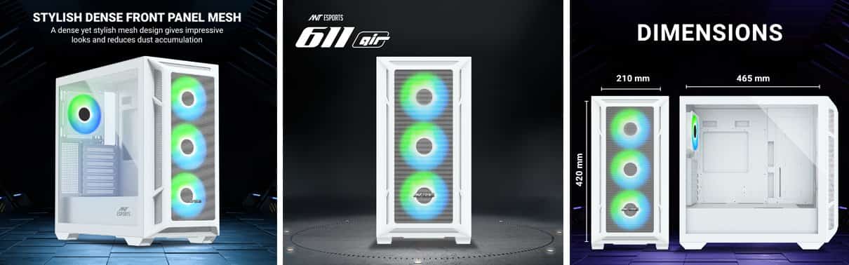 - Advanced Cooling Performance: The Ant Esports 611 Air White gaming cabinet is a cooling powerhouse, equipped with four pre-installed 120mm ARGB fans that provide excellent airflow while adding a vibrant and dynamic visual element to your gaming setup. With support for up to seven 120mm fans in total, you have the freedom to customize your cooling configuration to keep your system running at optimal temperatures.