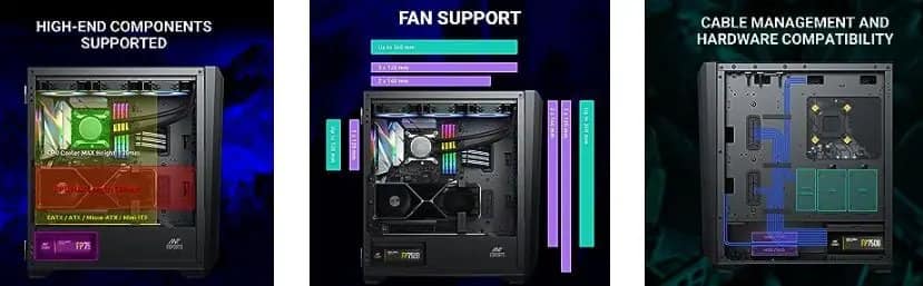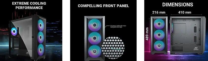 - Sturdy Build Quality: The Ant Esports 711 Air is built with durability in mind. It features a robust construction and premium materials that provide excellent support to even the heaviest of components like beefy air coolers and thick graphics cards.