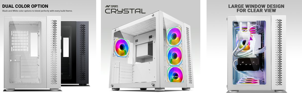 Cooling enthusiasts will revel in the possibilities that the Crystal presents. Equipped to handle the most intensive gaming sessions, this cabinet supports up to a 360mm radiator on top, enabling superior heat dissipation and maintaining peak performance. With the ability to install up to ten 120mm fans, you have the freedom to fine-tune your cooling setup for ultimate thermal performance.Storage versatility is another highlight of the Ant Esports Crystal. Offering adaptable storage options, this cabinet can accommodate two 3.5″ HDDs or one 2.5″ SSD and one 3.5″ HDD, ensuring that your gaming library and important data are well within reach. Say goodbye to storage limitations and hello to a seamless gaming experience.