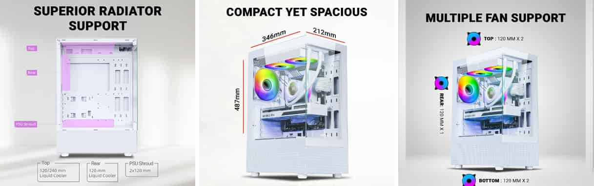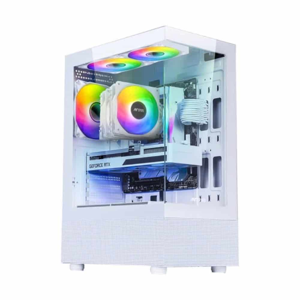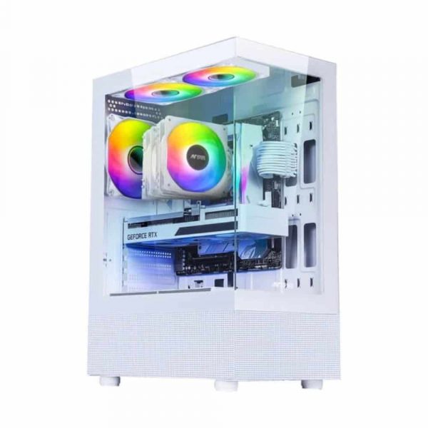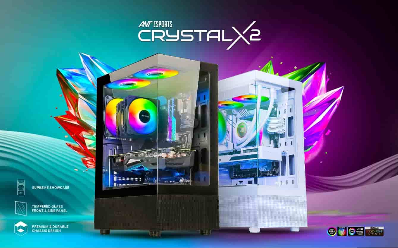 - Spectacular Panoramic Glass Design: The Ant Esports Crystal X2 White boasts a stunning panoramic glass design, providing a clear and unobstructed view of the internal components from both the front and side. This unique feature allows users to showcase their gaming rig and RGB components, enhancing the overall aesthetic appeal of the build.