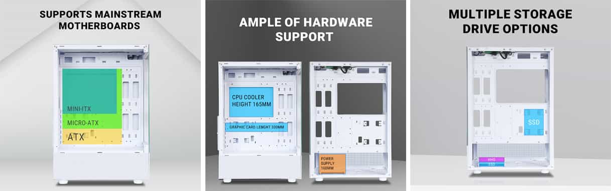- Compatibility with Mainstream Components: Supporting CPU air coolers with a height of up to 165mm, the Crystal X2 accommodates all mainstream air coolers available in the market. This compatibility ensures that users have a wide range of cooling solutions to choose from, catering to their specific performance and aesthetic preferences.
