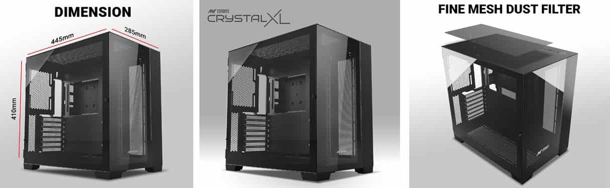- Expansive Component Support: Designed for enthusiasts, the Crystal XL supports ATX motherboards and PSUs, ensuring compatibility with a wide range of components. The case can accommodate CPU air coolers up to 167mm in height, allowing for the installation of even beefier cooling solutions for overclocking and intensive tasks.