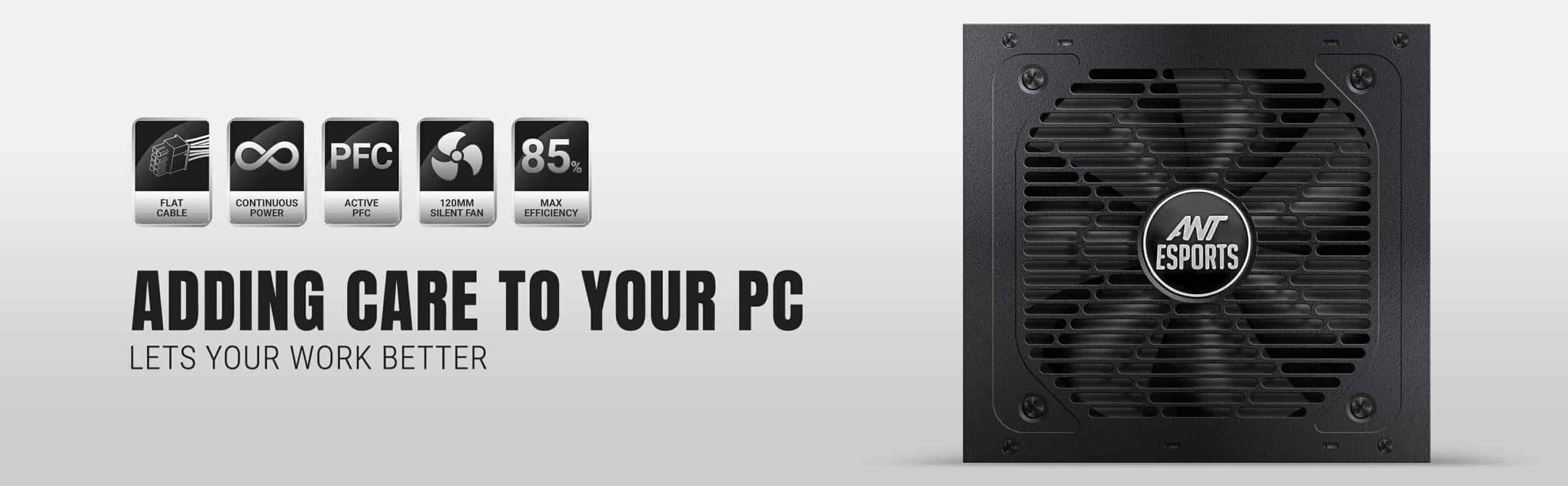 Equipped with active Power Factor Correction (PFC), the FG750 is engineered to effortlessly handle voltage fluctuations, ensuring uninterrupted performance in any power environment. Whether you’re engaged in marathon gaming sessions or tackling resource-intensive tasks, this PSU delivers continuous and reliable power. Plus, the integrated 120mm silent fan keeps your system cool without adding unwanted noise. Elevate your gaming setup with the Ant Esports FG750 and power up your gaming adventures like never before.