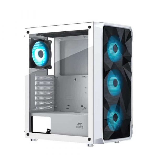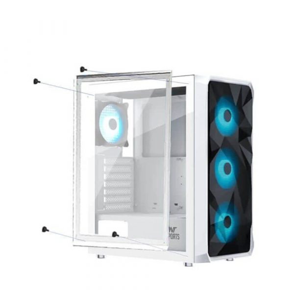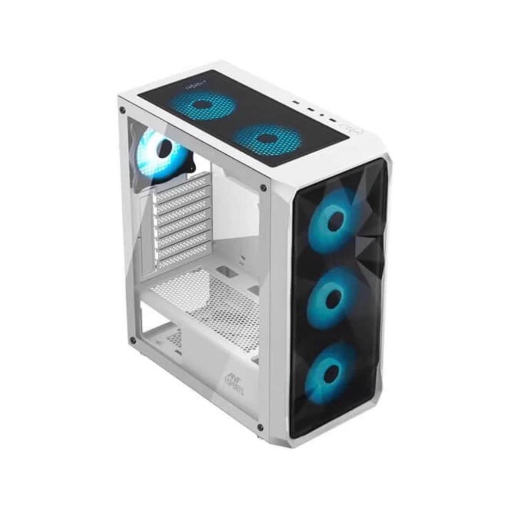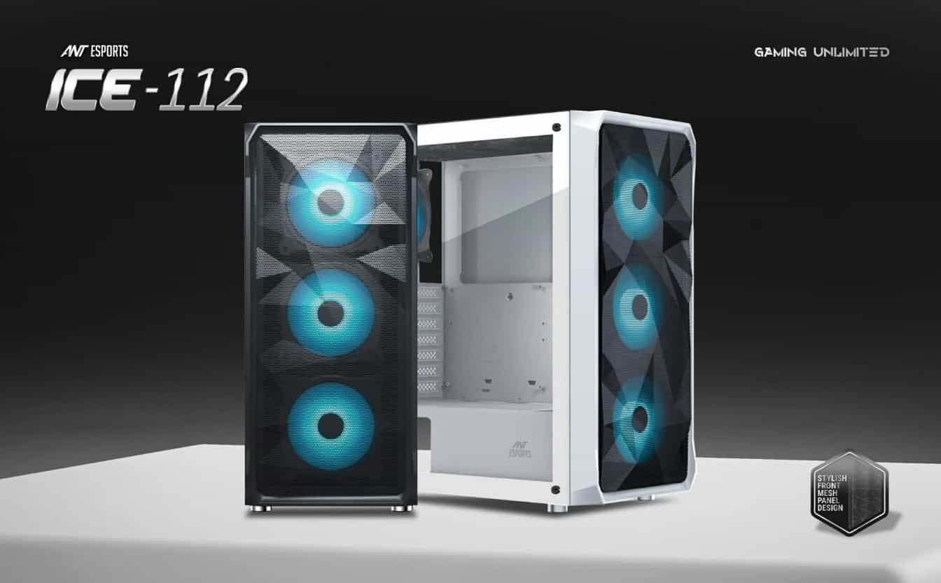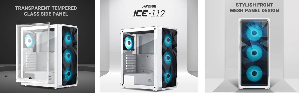 Storage flexibility is a hallmark of the Ant Esports ICE-112 White, with the ability to house up to two 3.5″ HDDs or two 2.5″ SSDs simultaneously, ensuring your game library has a home. Furthermore, the cabinet arrives with four pre-installed rainbow LED fans that don’t just keep your components cool but also add a vibrant and captivating visual dimension to your setup right out of the box. The ICE-112’s meticulous design extends to cable management, enabling a clean and organized interior that complements the sleek exterior aesthetics.Elevate your gaming setup with the Ant Esports ICE-112 Gaming PC Cabinet, where innovative design meets uncompromising performance. Whether you’re a seasoned esports player or a dedicated enthusiast, the ICE-112 is ready to house your ambitions and redefine your gaming journey.