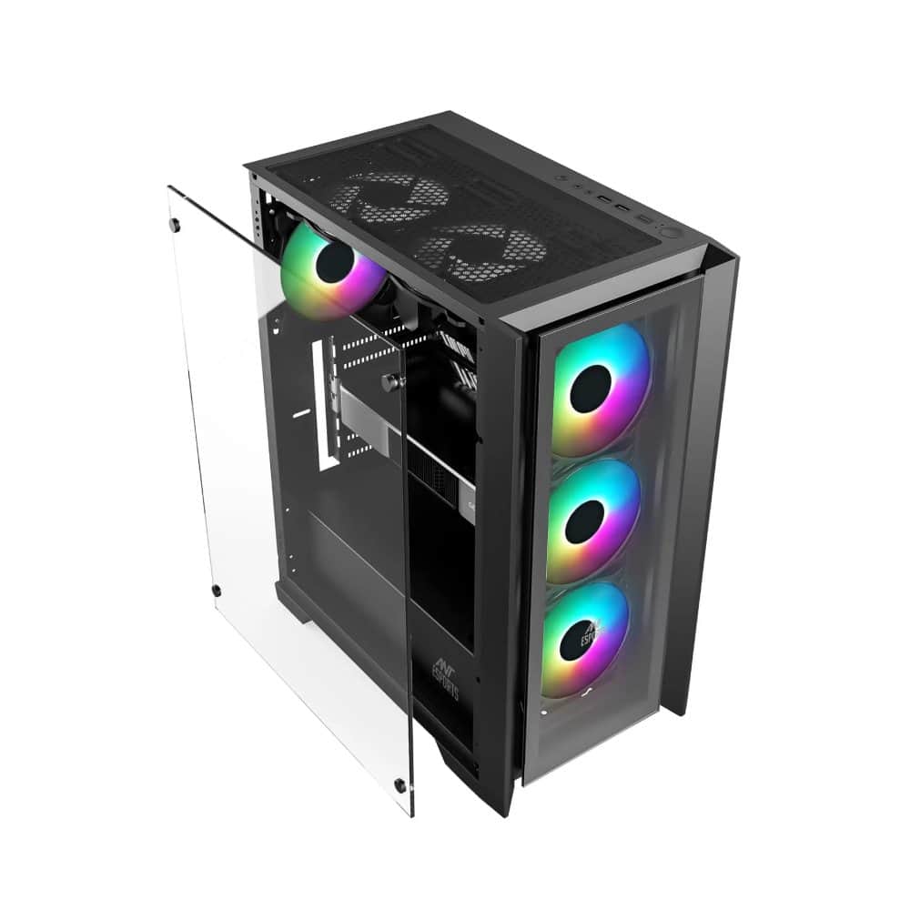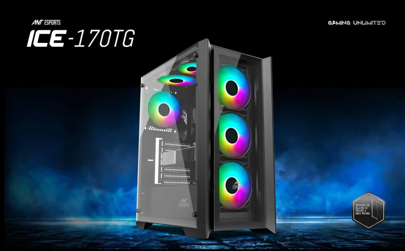 Ant Esports ICE-170TG is designed to elevate your gaming experience to the next level, this cabinet is a perfect blend of style and performance.The Ant Esports ICE-170TG features a sleek front glass panel that not only adds a touch of elegance to your gaming setup but also allows you to showcase your powerful components in all their glory. The transparent panel lets you feast your eyes on the gaming prowess inside, making it an instant head-turner among your gaming friends.With four pre-installed fans right out of the box, the ICE-170TG ensures optimal cooling right from the start. Say goodbye to overheating worries as these fans work tirelessly to maintain ideal temperatures during intense gaming sessions. But that’s not all – if you’re after even more cooling power, the cabinet offers impressive flexibility.