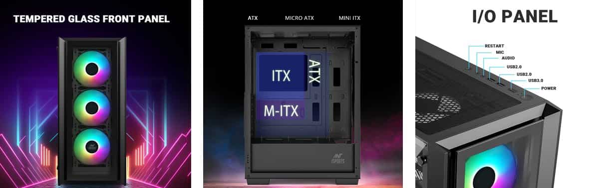 - Stunning Aesthetics: The Ant Esports ICE-170TG gaming cabinet boasts a front glass panel that offers a clear view of the internal components, allowing gamers to showcase their powerful hardware and vibrant RGB lighting setups. The sleek and modern design adds a touch of elegance to any gaming setup, making it an attractive choice for gamers who value aesthetics.