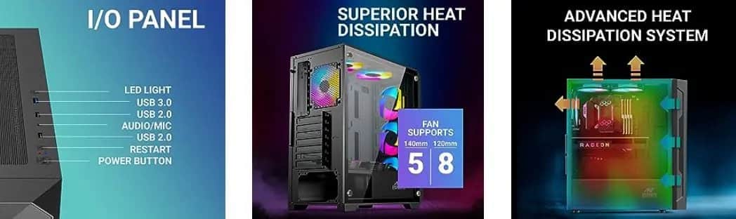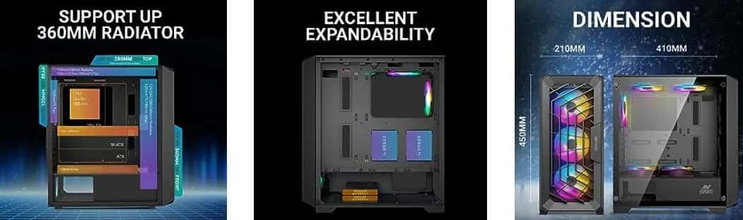 - Ample of Fan Support – Three 120mm A-RGB fans are included with the case, providing ample cooling power while adding a stylish touch to your gaming setup. The case can support upto eight 120mm fans to create the perfect air cooled system.