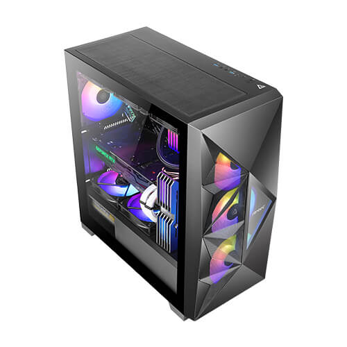The all-new Dark Fleet Series Antec DF800 Mid-Tower ATX case brings out a completely different visual effect by its geometrical mesh design and mirror surface materials. With its full-view tempered glass side panel, the Antec DF800offers a better showcase for your gaming gear.