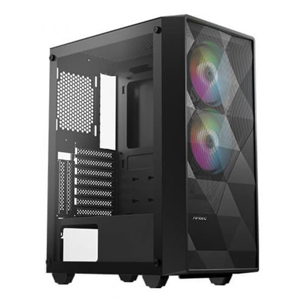 The Antec NX270 TG Gaming Cabinet features an unique mesh and geometric diamond-shaped design on its front panel. With its preinstalled 2 x 120 RGB fixed model fans in front, the Antec NX270 TG Gaming Cabinet provides massive airflow and good thermal performance.