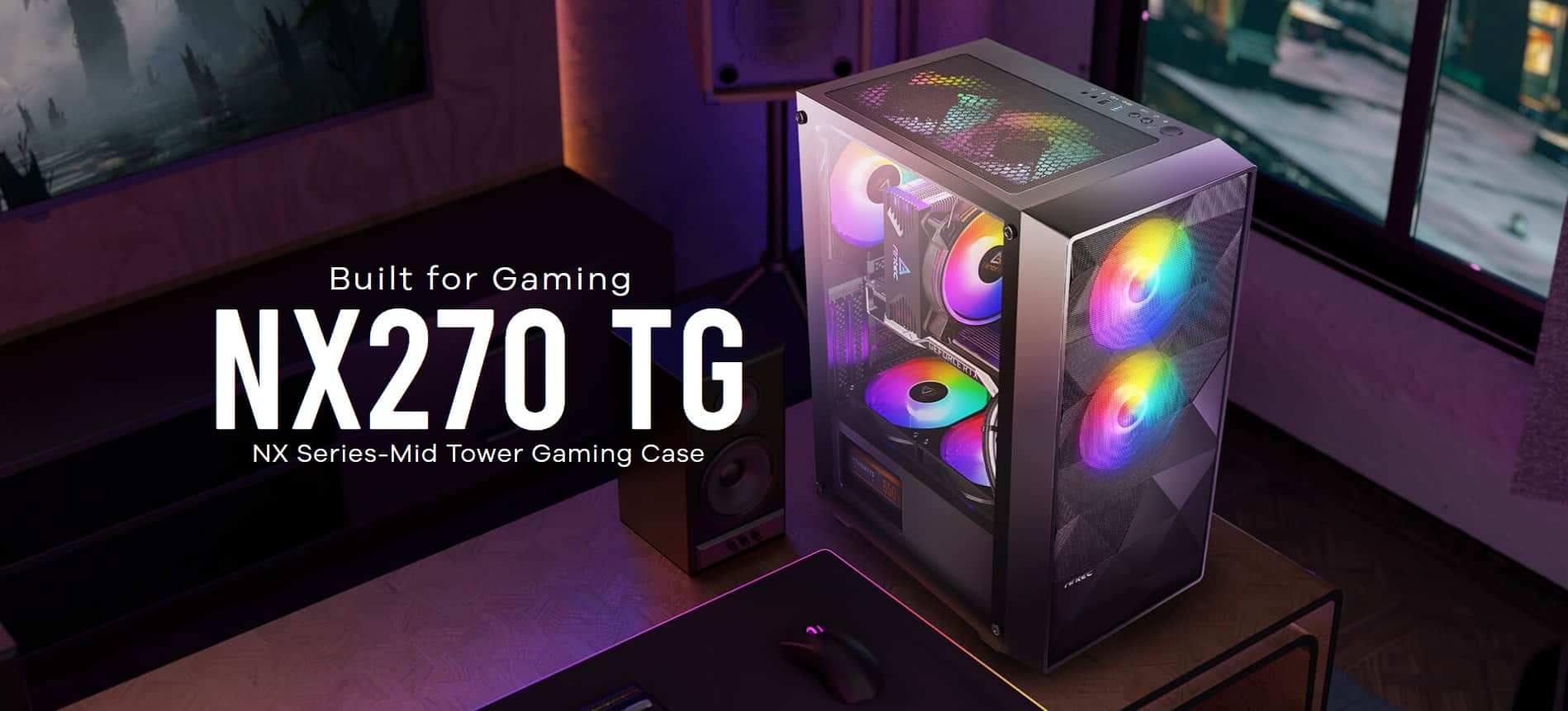 The Antec NX270 TG Gaming Cabinet effortlessly combines a bevy of in-demand features: USB 3.0 connectivity, ample storage drive bays, room for expansion, and includes 2 x 120 RGB fixed model fans in front. With support for up to a 280 mm liquid cooling radiator in front & a 240 mm radiator on top, Antec NX270 TG Gaming Cabinet is easy to build with and easy to cool.
