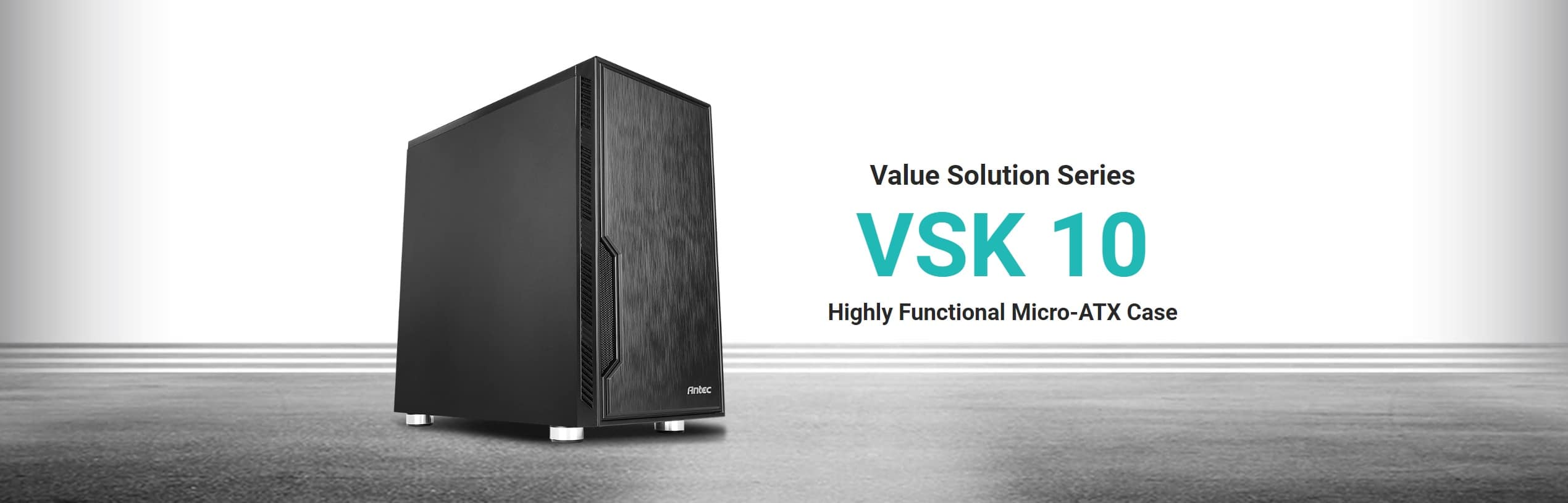 Up to mount 2 x 140 mm fans both on the top and in the front of Antec VSK10 Gaming Cabinet.