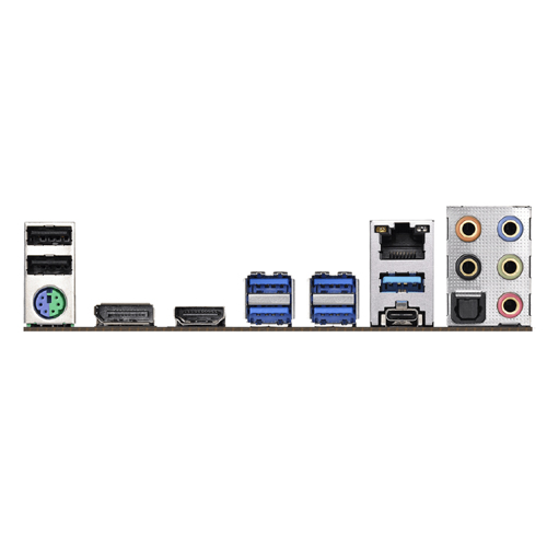 | Rear Panel I/O | – 1 x PS/2 Mouse/Keyboard Port – 1 x HDMI Port – 1 x DisplayPort 1.2 – 1 x Optical SPDIF Out Port – 2 x USB 2.0 Ports (Supports ESD Protection) – 1 x USB 3.1 Gen2 Type-A Port (10 Gb/s) (Supports ESD Protection) – 1 x USB 3.1 Gen2 Type-C Port (10 Gb/s) (Supports ESD Protection) – 4 x USB 3.1 Gen1 Ports (Supports ESD Protection)* – 1 x RJ-45 LAN Port with LED (ACT/LINK LED and SPEED LED) – HD Audio Jacks: Rear Speaker / Central / Bass / Line in / Front Speaker / Microphone (Gold Audio Jacks)*Ultra USB Power is supported on USB3_34 ports. ACPI wake-up function is not supported on USB3_34 ports. |