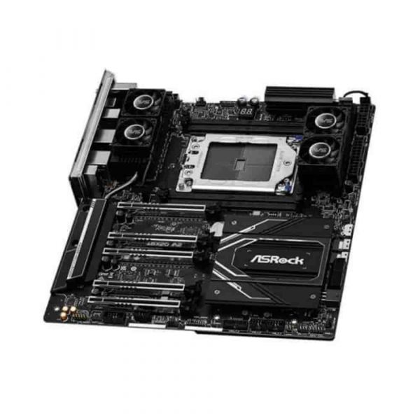 ASRock TRX50 WS DDR5 Workstation Motherboard is equipped with a composite VRM heatsink active cooling fans, XXL aluminum heatsinks and heat pipe for maximum heat dissipation.