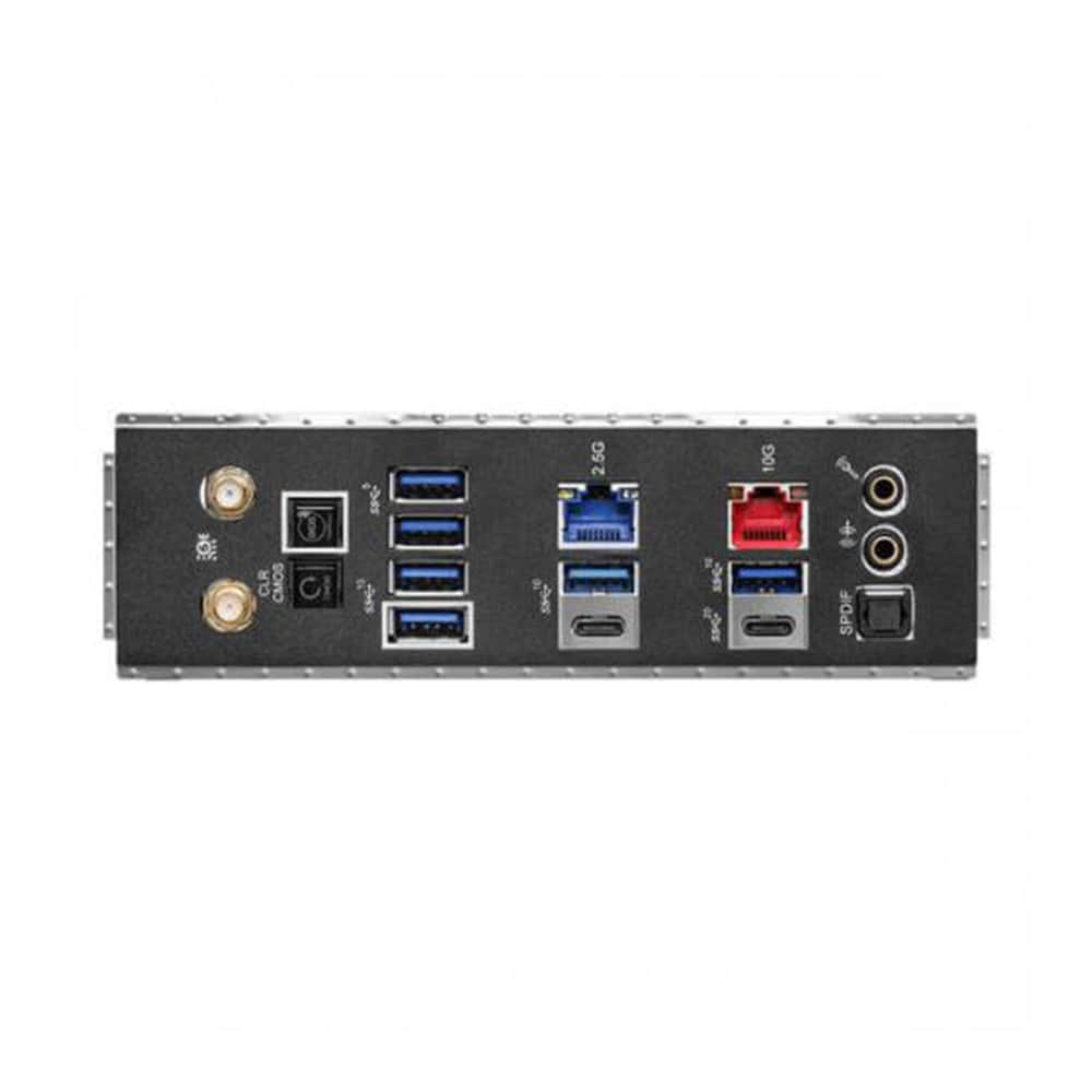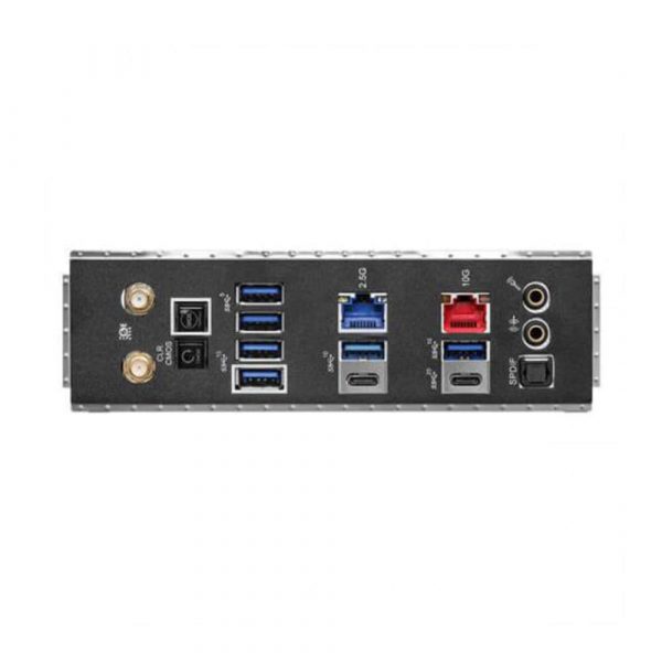 | Rear Panel I/O | – 2 x Antenna Ports – 1 x Optical SPDIF Out Port – 1 x USB 3.2 Gen2x2 Type-C Port (20 Gb/s) – 4 x USB 3.2 Gen2 Type-A Ports (10 Gb/s) – 1 x USB 3.2 Gen2 Type-C Port (10 Gb/s) – 2 x USB 3.2 Gen1 Type-A Ports – 2 x RJ-45 LAN Ports – 1 x Clear CMOS Button – 1 x BIOS Flashback Button – 1 x Line Out Jack (Gold Audio Jack) – 1 x Microphone Input Jack (Gold Audio Jack) |