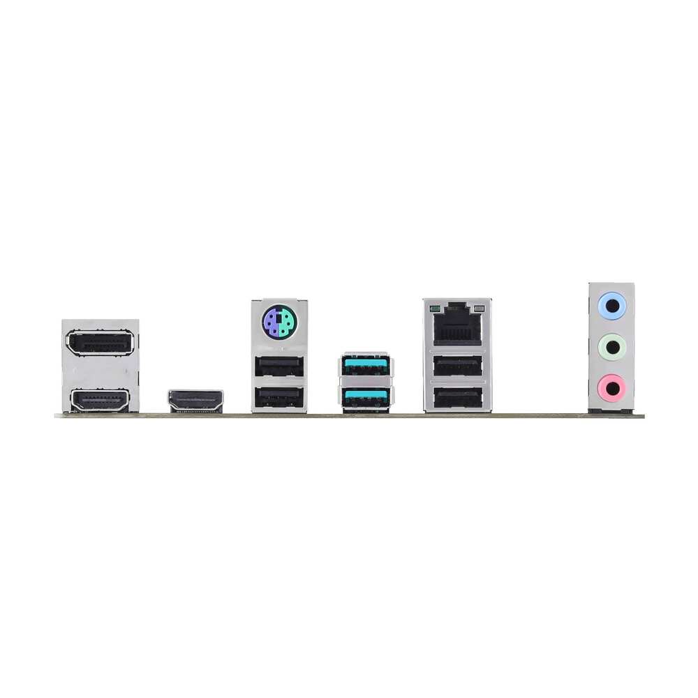 | Back Panel I/O Ports | 2 x USB 3.2 Gen 2 ports (2 x Type-A ) 4 x USB 2.0 ports (4 x Type-A) 1 x DisplayPort 2 x HDMI® ports 1 x Realtek 2.5Gb Ethernet port 3 x Audio jacks 1 x PS/2 Keyboard/Mouse combo port |