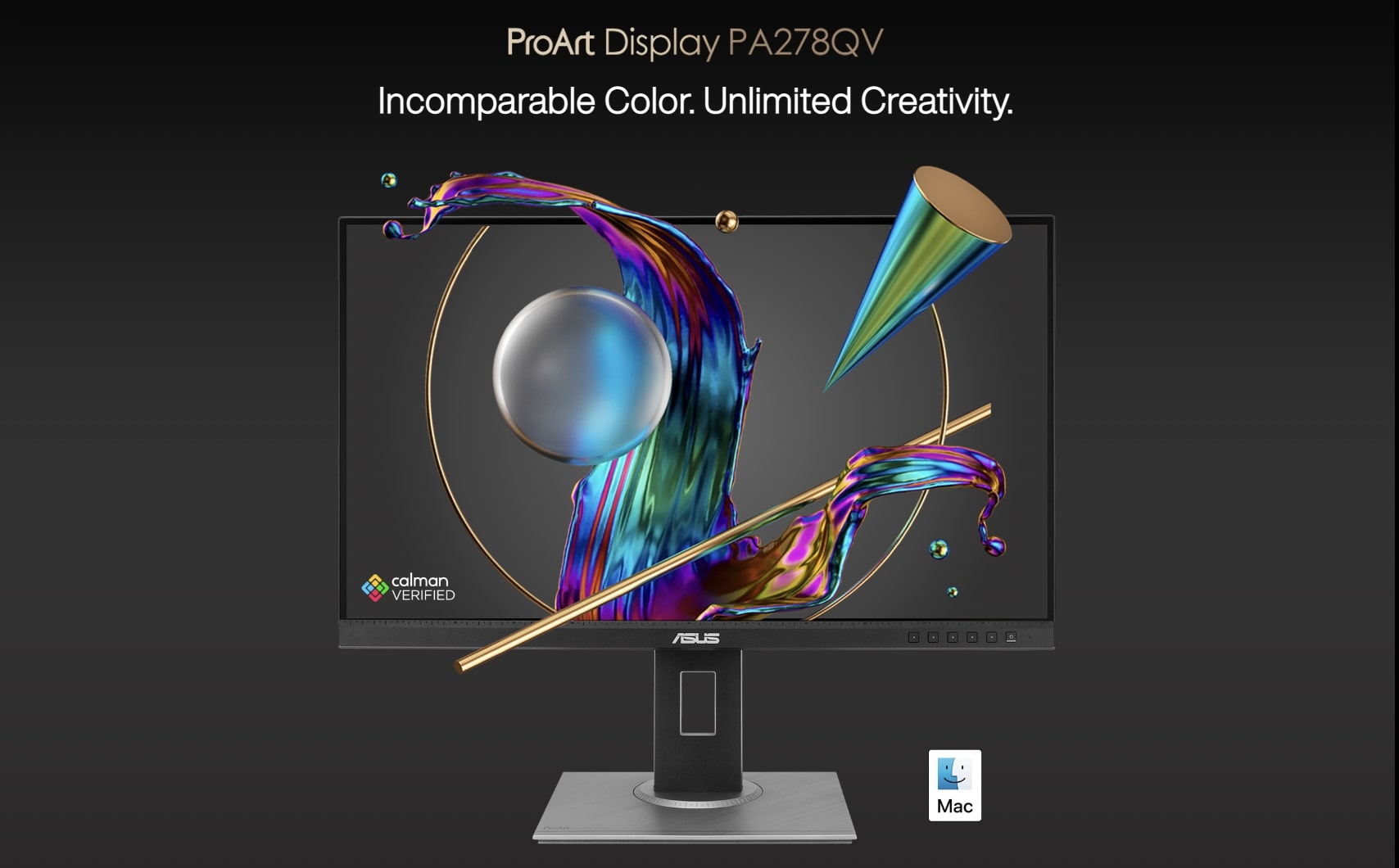 Asus ProArt PA278QV display delivers industry-standard 100% sRGB and 100% Rec. 709 color gamut for rich, vivid reproduction that ensures every detail of your photos is clear and lifelike.