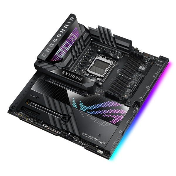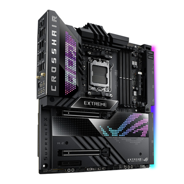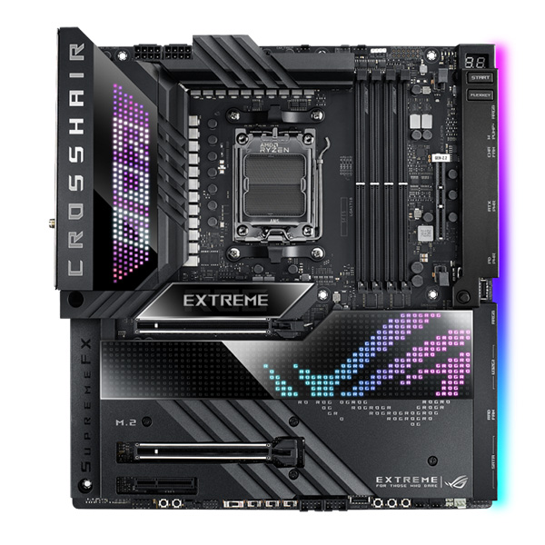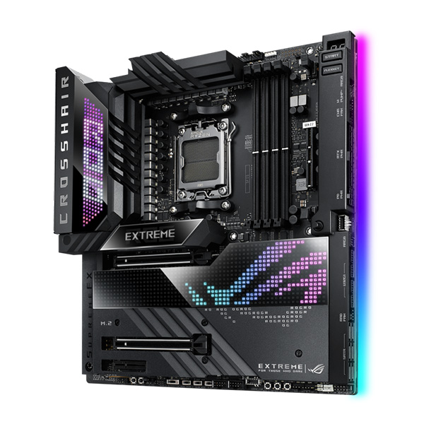ASUS ROG Crosshair X670E Extreme EATX motherboard with 20 + 2 power stages, PCIe® 5.0, DDR5 support, five M.2 slots, USB 3.2 Gen 2×2 front-panel header with Quick Charge 4+, USB4™ ports, WiFi 6E