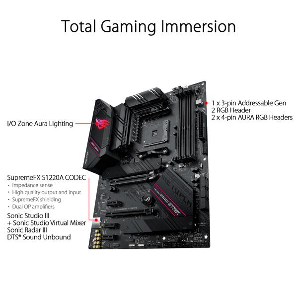 - Industry-leading Gaming Audio: AI Noise cancellation, SupremeFX S1220A codec, DTS® Sound Unbound™ and Sonic Studio III for immersive audio