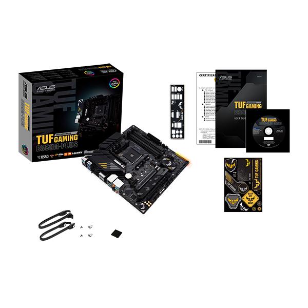 Asus TUF Gaming B550M-Plus Motherboard with PCIe 4.0, dual M.2, 10 DrMOS power stages, 2.5 Gb Ethernet, HDMI, DisplayPort, SATA 6 Gbps, USB 3.2 Gen 2 Type-A and Type-C, and Aura Sync RGB lighting support