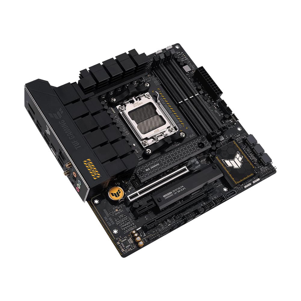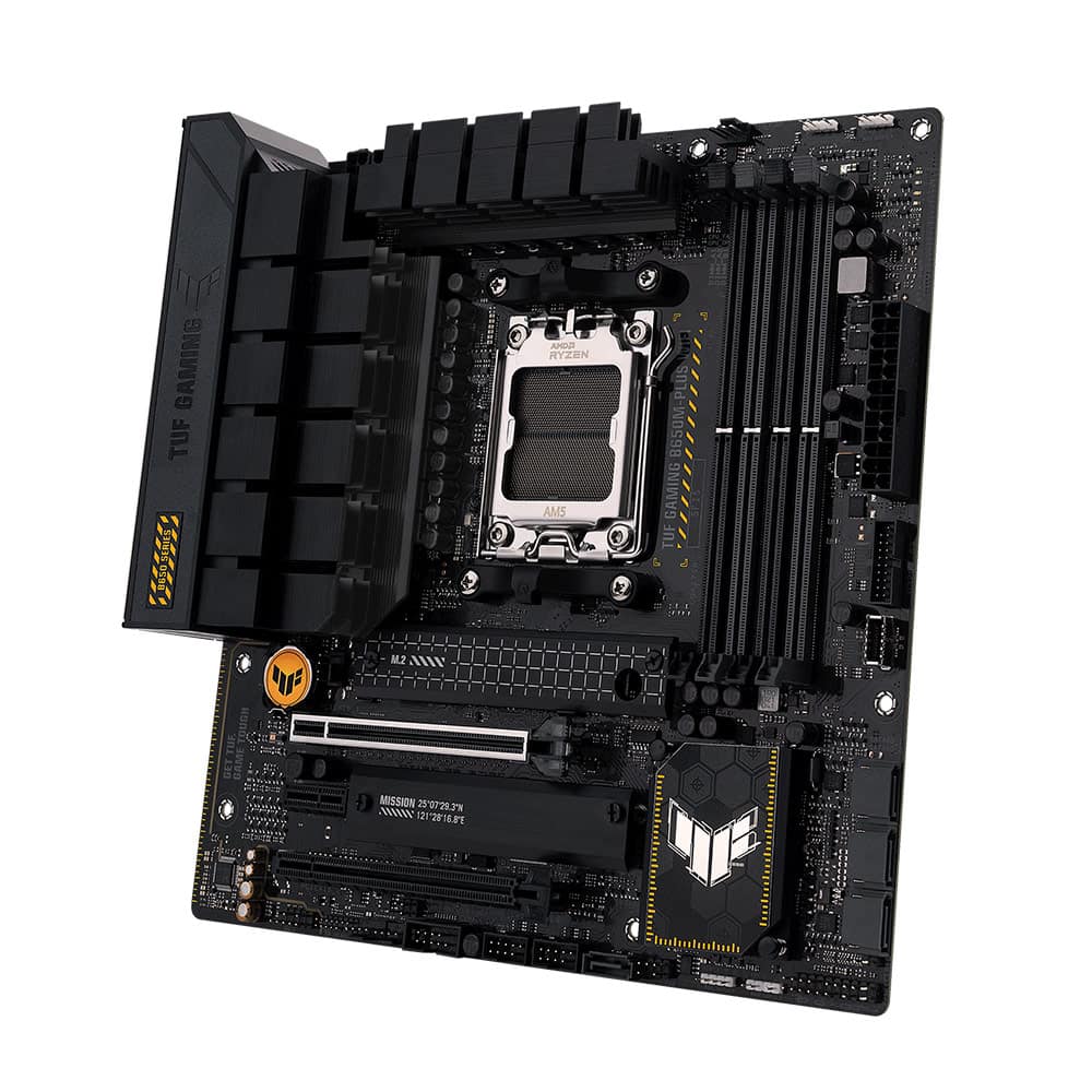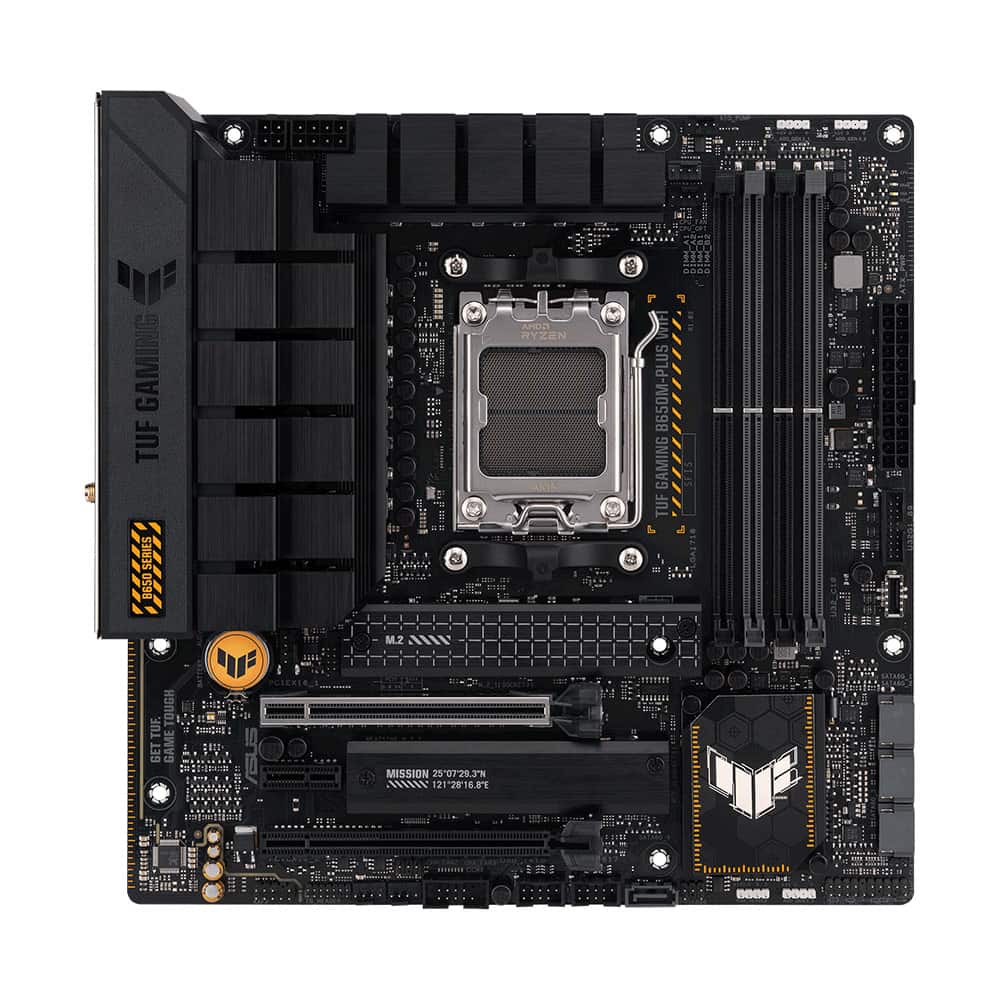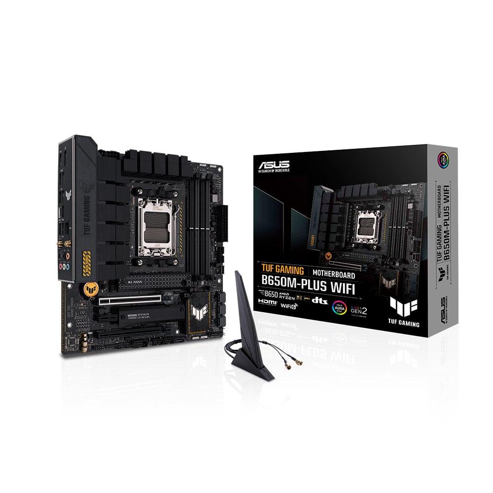 Asus TUF Gaming B650M Plus WIFI DDR5 motherboards provide a feature-packed high-performance gaming package, with ultrafast networking for smoother online gameplay, pristine audio with positional cues for FPS Gaming, and onboard RGB lighting that syncs with attached gear to personalize your gaming atmosphere.