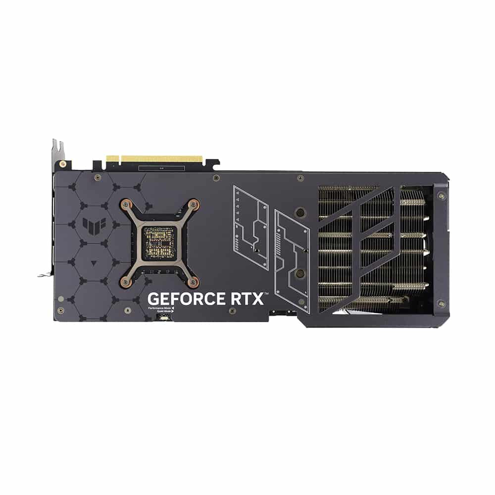 Well-maintained Formation The two side fans spin counterclockwise to minimize turbulence and maximize air dispersion through the heatsink. All three fans come to a standstill when Asus TUF Gaming RTX 4080 Super 16GB Graphics Card temps are below 50 Celsius, letting you play less-demanding games or perform light tasks in relative silence. Fans start up again when temps are over 55 Celsius, referencing a speed curve that balances performance and acoustics for work or play.