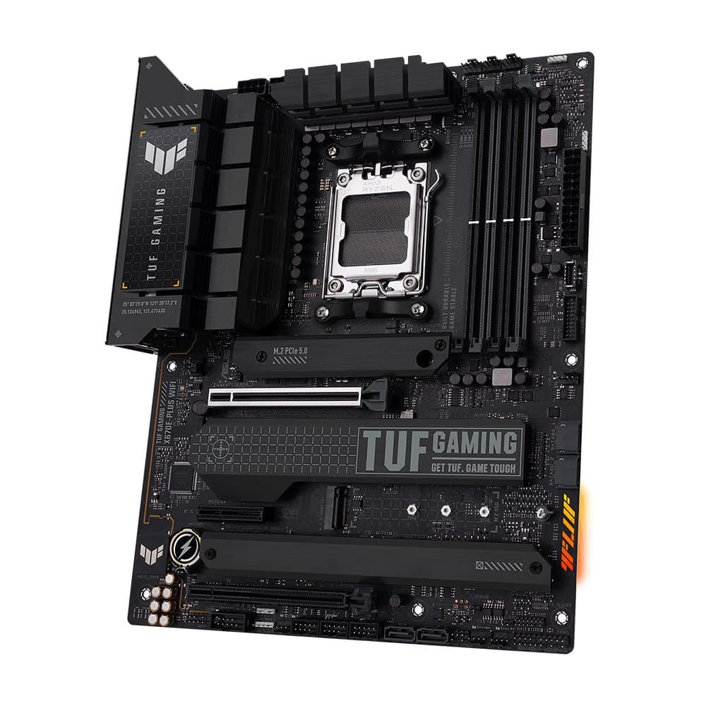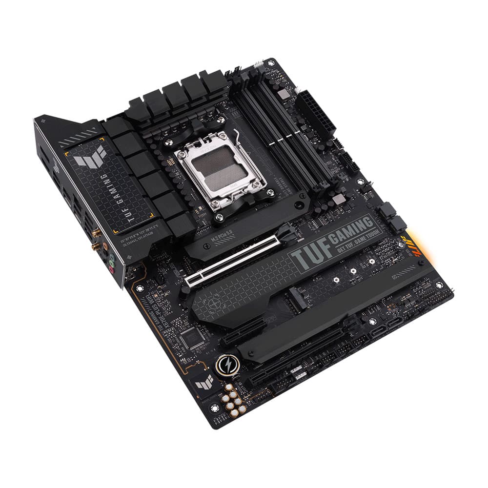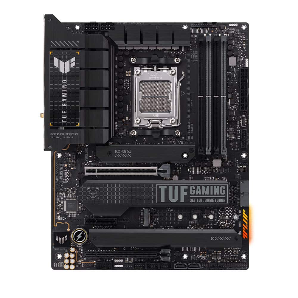 ASUS TUF Gaming X670E-Plus WIFI DDR5 motherboards provide a feature-packed high-performance gaming package, with ultrafast networking for smoother online gameplay, pristine audio with positional cues for FPS Gaming, and onboard RGB lighting that syncs with attached gear to personalize your gaming atmosphere.