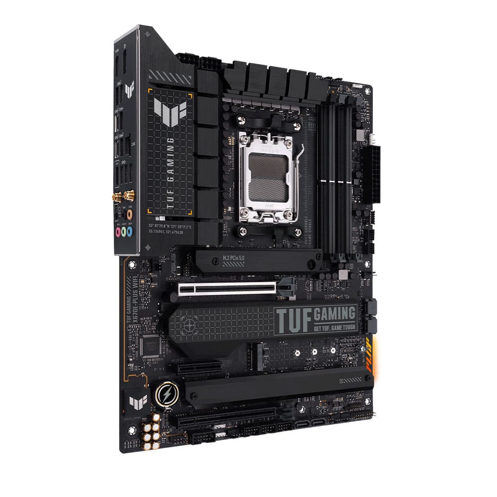 The ASUS TUF Gaming X670E-Plus WIFI DDR5 reaches new heights of performance potential with the latest version of PCI Express, while an arsenal of USB ports includes three Type-C® connections, and Thunderbolt™ (USB4®) expands compatibility and bandwidth even further.