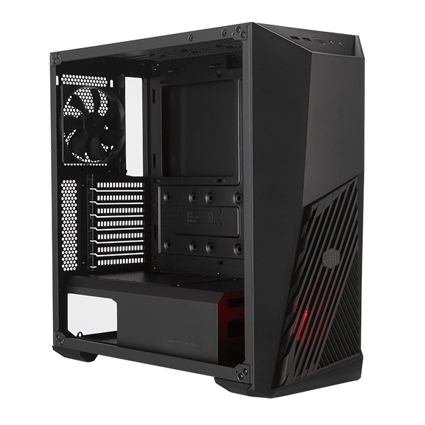 Gaming is in the core of the new MasterBox K501L. Donning an illuminated fan against the angled front panel ventilation speaks to its competitive character. Support of gaming hardware like long graphics cards, plenty of storage, and liquid cooling take priority in the K501L while still leaving room for future upgrades.