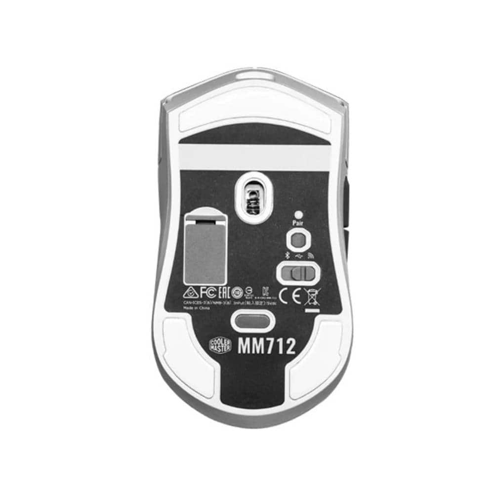 - The Cooler Master MM712 Wireless White is the next evolution of our first popular lightweight mouse, leveled up to lightweight prestige. It retains all the same benefits: gaming-grade sensor, hybrid 2.4 GHz and Bluetooth 5.1 wireless capability, PTFE feet for unrivaled glide, optical micro switches for near-instant input, and ultraweave cable for minimal snagging. However, it does all this while shedding the shredded chassis, opting instead for a seamless, hole-less profile specially engineered to remain 59g in total weight. Responsive, agile, and tactile, the Cooler Master MM712 truly fills in the gaps of its perforated predecessors.