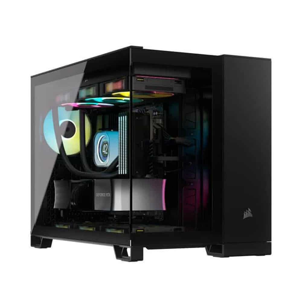 The Corsair 2500X Airflow can house a powerhouse PC with an impressively small footprint. Ensure that your build is clean, organized, and well cooled in the primary chamber while hiding cable routing, storage drives, and your PSU in the second chamber.