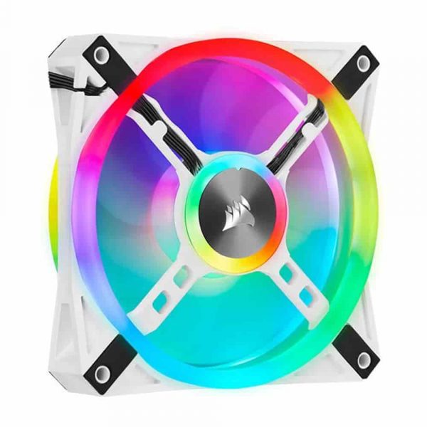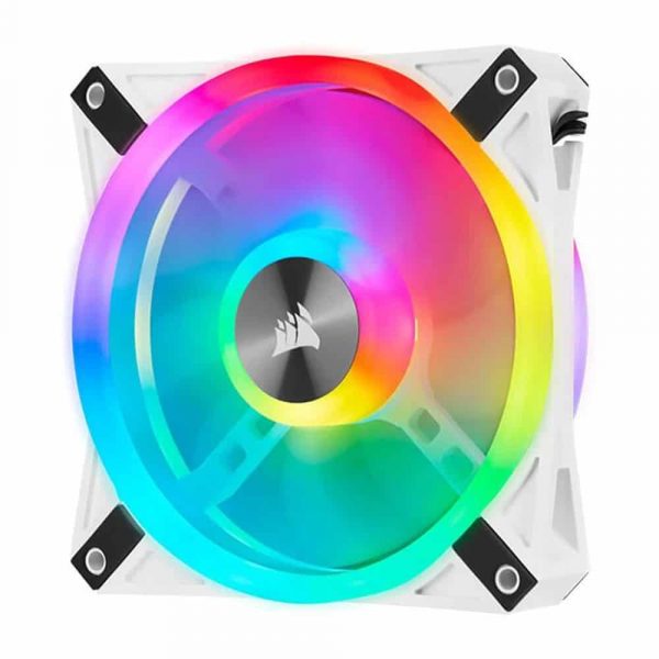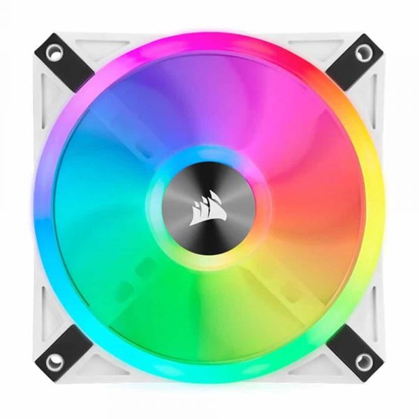 - Give your PC spectacular lighting from any angle with the CORSAIR iCUE QL120 RGB PWM White Triple Fan Kit, equipped with 102 individually addressable RGB LEDs – 34 in each fan – across four distinct light loops in a brilliant white housing.