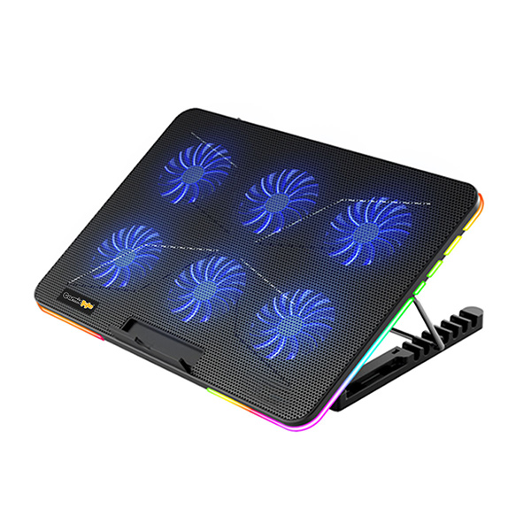 COSMIC BYTE HYDROID RGB COOLING PAD WITH 6 FANS, 60MM FAN SIZE, MOBILE HOLDER, 7 LEVELS HEIGHT ADJUSTMENT, UPTO 15″ LAPTOPS (BLACK):