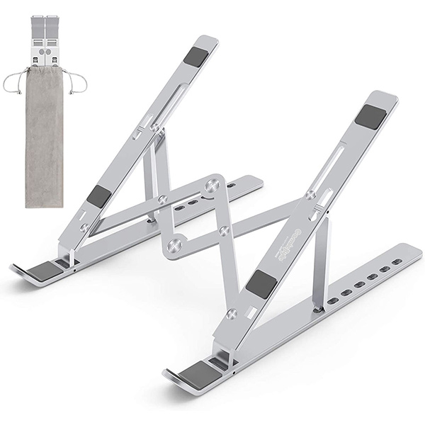 COSMIC BYTE ADJUSTABLE ALUMINUM PORTABLE LAPTOP RACK STAND FOR UPTO 17″ LAPTOPS, TABLETS, MOBILES, BOOKS WITH POUCH (SILVER):