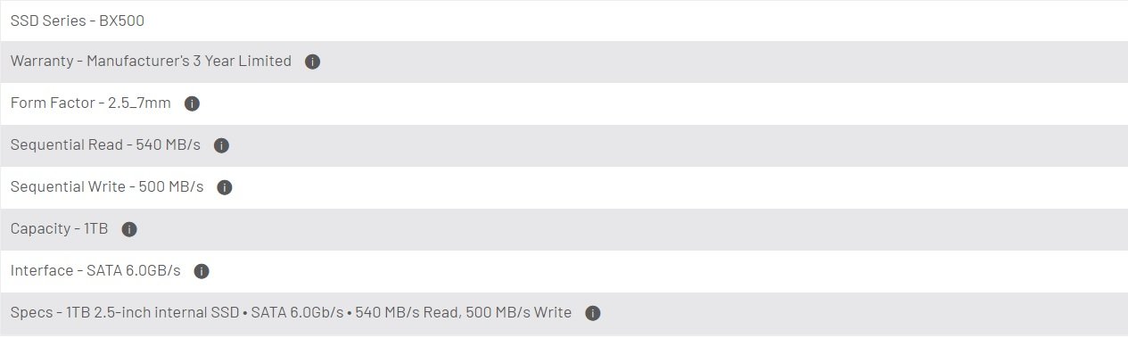 Crucial BX500 960GB (2.5 inch SATA Internal SSD)
