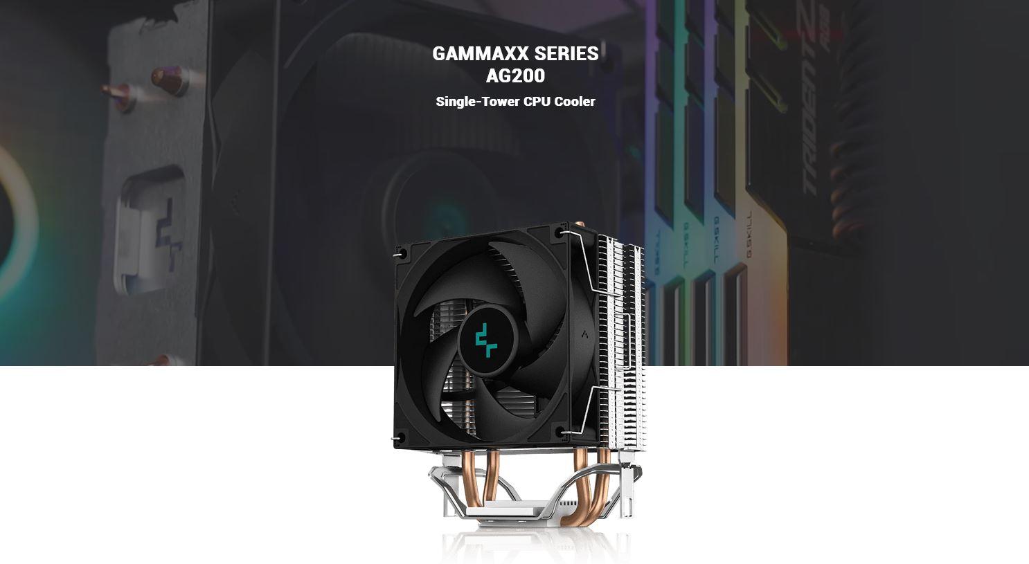The Deepcool AG200 is a compact single-tower CPU cooler representing a new generation update from the classic GAMMAXX basic coolers with upgraded appearance and efficiency at 100W heat dissipation power.