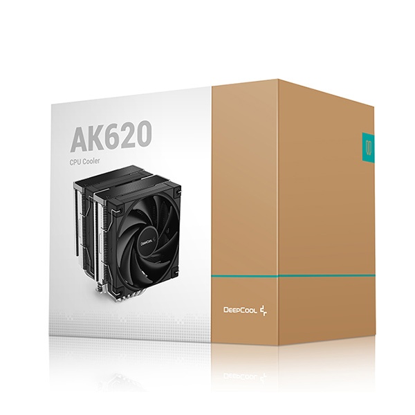 Achieve dominant cooling and silent efficiency with the DeepCool AK620 High Performance CPU Cooler equipped with six copper heat pipes stacked with a dense dual-tower fin array and two 120 FDB fans.