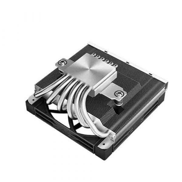 Utilizing 62 aluminum fins, a slim profile 120mm fan, 6 optimized heatpipes, and a raised copper coldplate, the AN600 packs a lot of cooling potential in a short 67mm tall CPU cooler of the Deepcool AN600 120mm CPU Air Cooler.