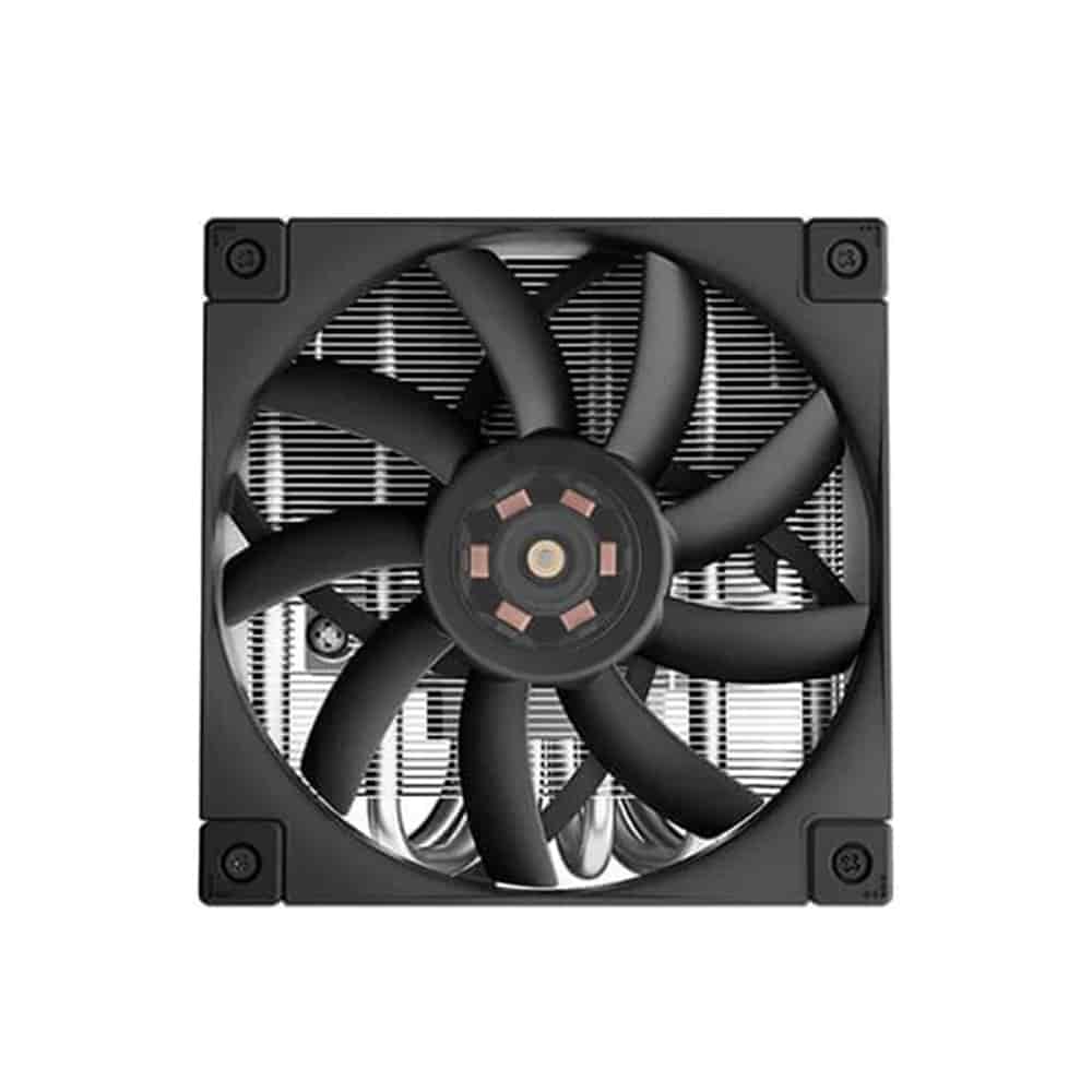 Taking full advantage of the slim 120mm PWM-enabled FDB fan and a top-down air flow, the Deepcool AN600 120mm CPU Air Cooler pushes massive amounts of air through the fin array and down onto the RAM and VRMs below. The visible 6-phase fan motor ensures all of this is accomplished while staying under 24.2 dB(A). A low-noise adapter cable is included.