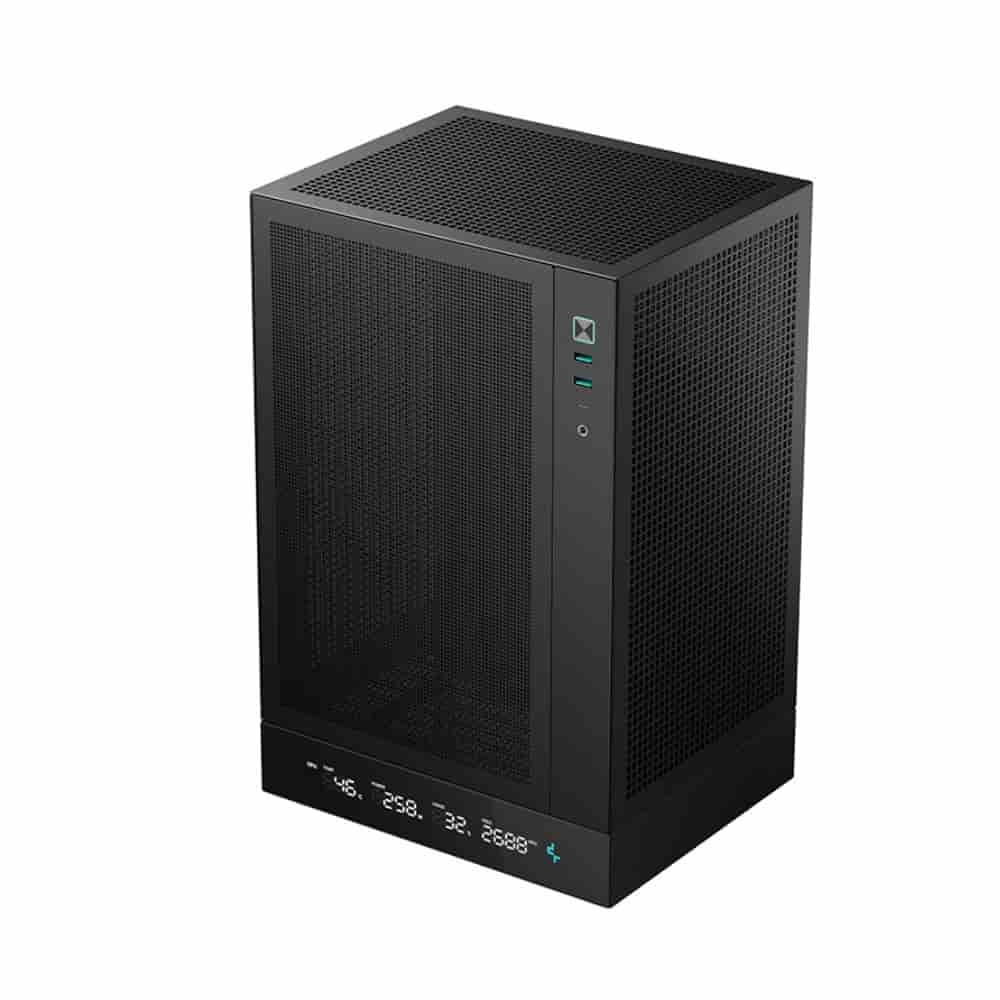 The DeepCool CH170 Digital Black is a premium Mini Tower ITX case that blends compact size, powerful cooling capabilities, and smart functionality. Designed for modern PC builders, it features an integrated digital display to monitor system stats, mesh ventilation for superior airflow, and support for radiators up to 280 mm. With ample GPU clearance, SFX/SFX-L PSU support, and space-efficient design, the CH170 Digital Black is ideal for compact gaming rigs, professional workstations, or portable PC setups.