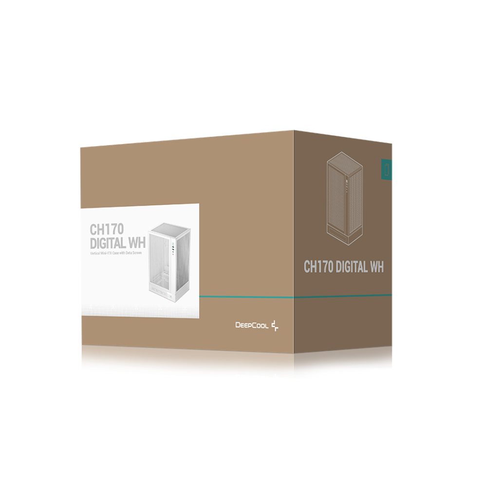 The DeepCool CH170 Digital White is a sleek Mini Tower ITX case that combines compact dimensions, premium aesthetics, and modern functionality. Its elegant white finish adds a fresh, minimal look to any setup, while the integrated digital display provides real-time system monitoring. Designed for high-performance builds, it supports up to a 280 mm radiator, large GPUs, and SFX/SFX-L power supplies. Ideal for gamers, creators, and minimal workspace enthusiasts, the CH170 Digital White offers excellent airflow, portability, and versatility in a small footprint.