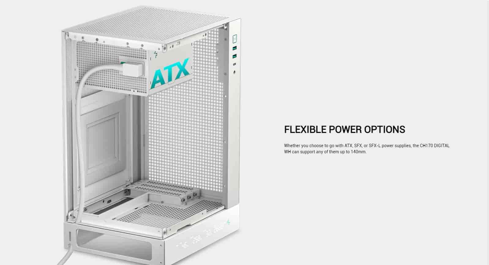 DeepCool CH170 Digital White Mini Tower Case, ITX Support, Up To 280 mm Radiator Support Cabinet