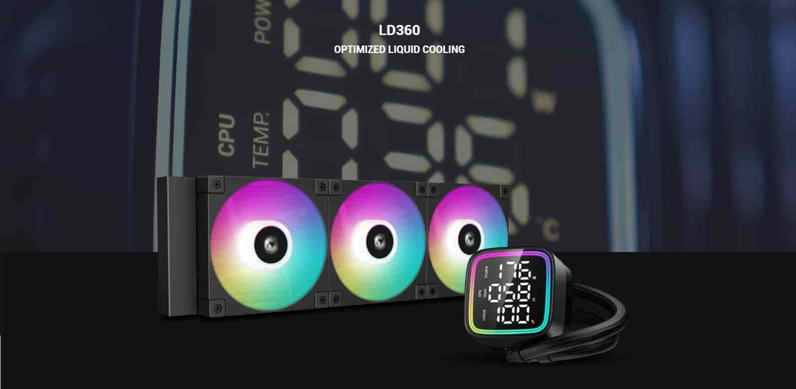 The large glass status screen, gradient ARGB halos, and a satin black finish add the finishing touch in Deepcool LD360 360mm